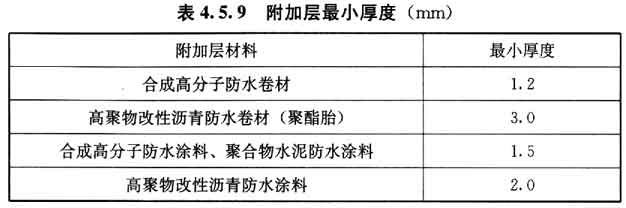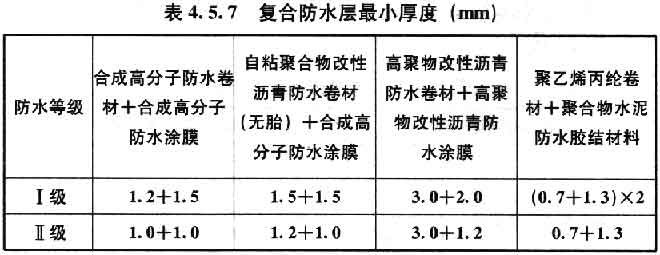 4.5.7 复合防水层最小厚度应符合表4.5.7的规定。