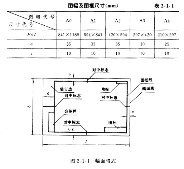 第2.1.1条 图幅及图框尺寸应符合表2.1.1的规定(图2.1.1)。
