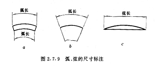 弦长的尺寸界线应垂直该圆弧的弦(图2.7.9c)。