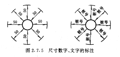 第2.7.5条 尺寸数字及文字书写方向应按图2.7.5标注。
