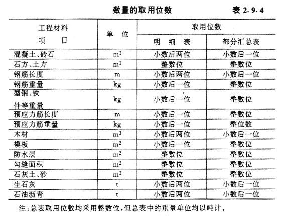 第2.9.4条 当带有阿拉伯数字的计量单位在文字、表格或公式中出现时,必须采用符号,如:重量为150t,不应写作重量为150吨或一百五十吨。当表中上下栏目的数值或文字相同时,不得使用省略形式表示。工程数量或主要材料数量的计算均应根据四舍五入的原则处理,其位数应按表2.9.4采用。