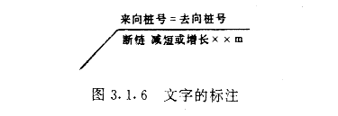 第3.1.3条 平曲线特殊点如第一缓和曲线起点、圆曲线起点,圆曲线中点、第二缓和曲线终点、第二缓和曲线起点、圆曲线终点的位置,宜在曲线内侧用引出线的形式表示,并应标注点的名称和桩号。