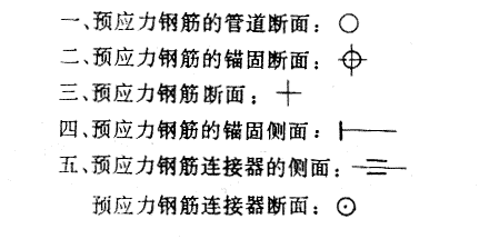 第4.3.1条 预应力钢筋应采用粗实线或2mm直径以上的黑圆点表示.图形轮廓线应采用细实线表示。当预应力钢筋与普通钢筋在同一视图中出现时,普通钢筋应采用中粗实线表示。一般构造图中的图形轮廓线应采用中粗实线表示。