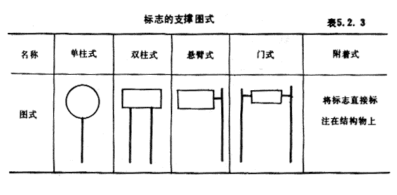 第5.2.3条 标志的支撑图式应采用粗实线绘制。支撑的画法应符合表5.2.3的规定。