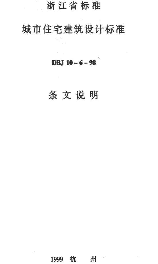 浙江省城市住宅建筑设计标准 [附条文说明] DBJ10-6-98 建标库